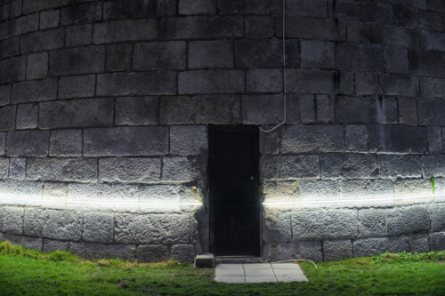For the Martello tower, the scientists Gerard McCarthy, Zoe Roseby and Katherine Dooley from Trinitycollege Dublin & Maynooth University, have combined the storm surge from a 2014 storm (3rd January- Windstorm Christina- 2.68m) with the 2100 high impact/ low probability storyline (2.3m) published in the most recent IPCC report (IPCC, 2021a) to create a line height of 1m.