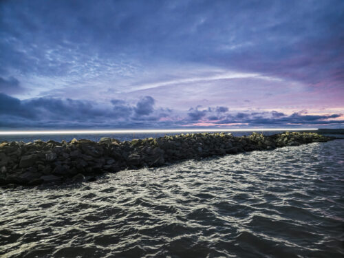 - The breakwater. 2.1 m above sea level. Could be under high water as early as 2065.