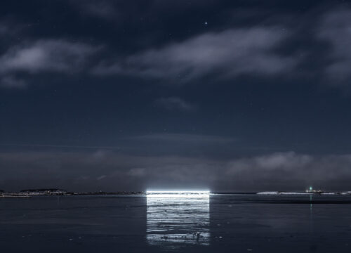 The installation creates an immersive experience that visualizes sea level rise caused by climate change. Scenarios based on the IPCC Climate Change Panel report and local ground elevation range from realistic predictions for the coming decades to more speculative estimates hundreds of years into the future.